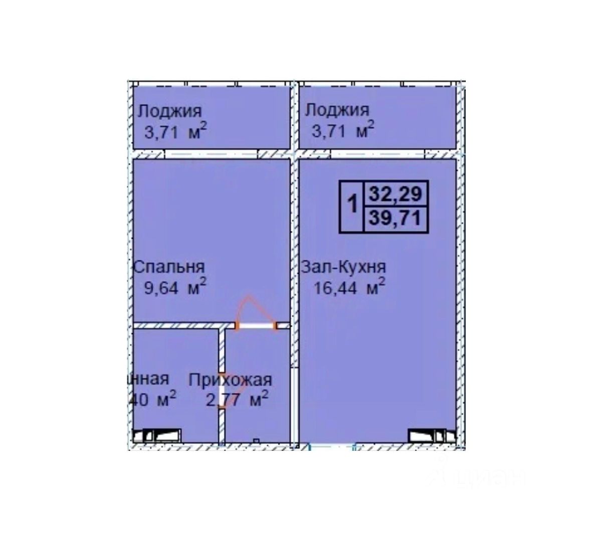 Общая площадь39,71 м2