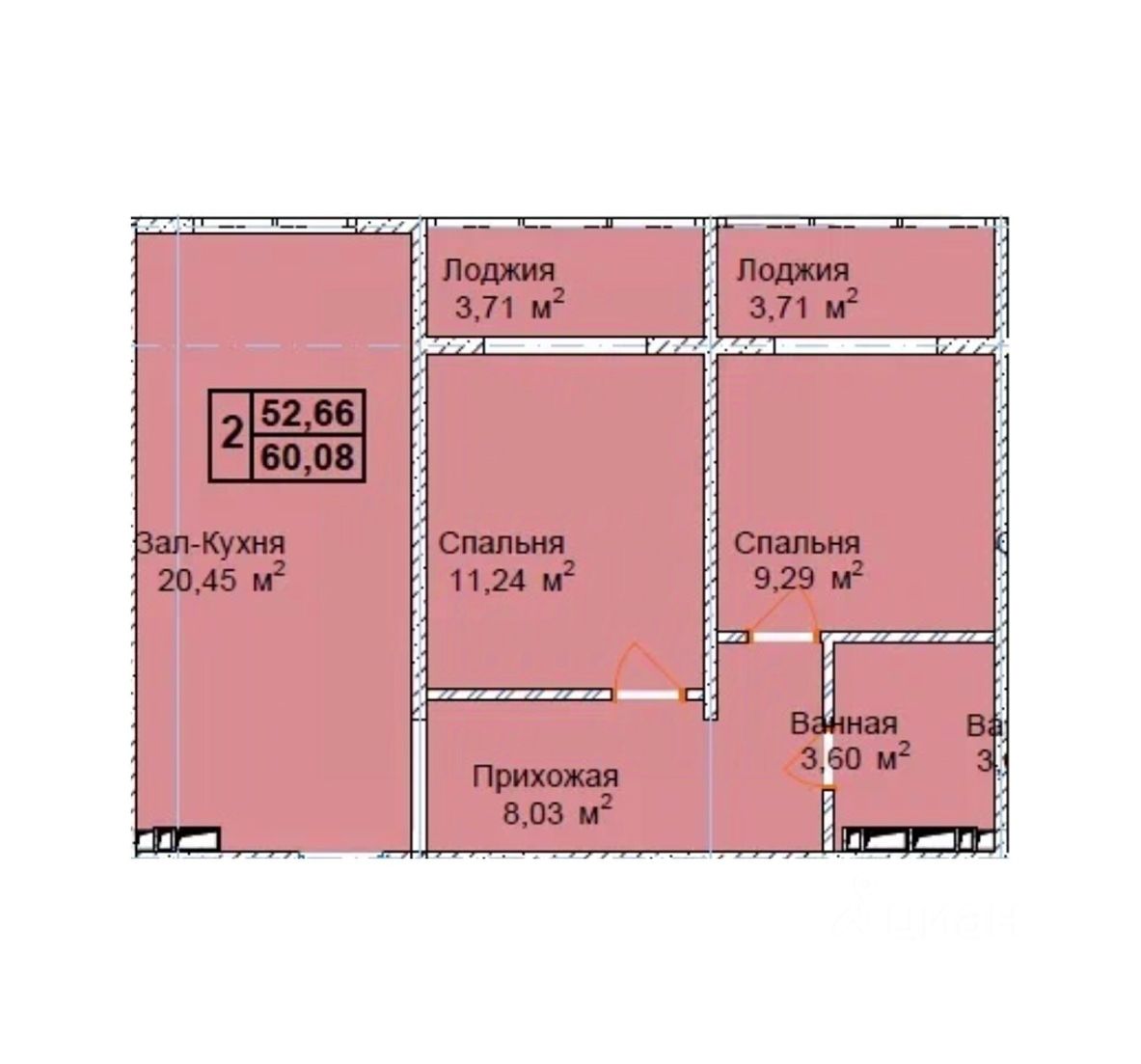 Общая площадь60,08 м2