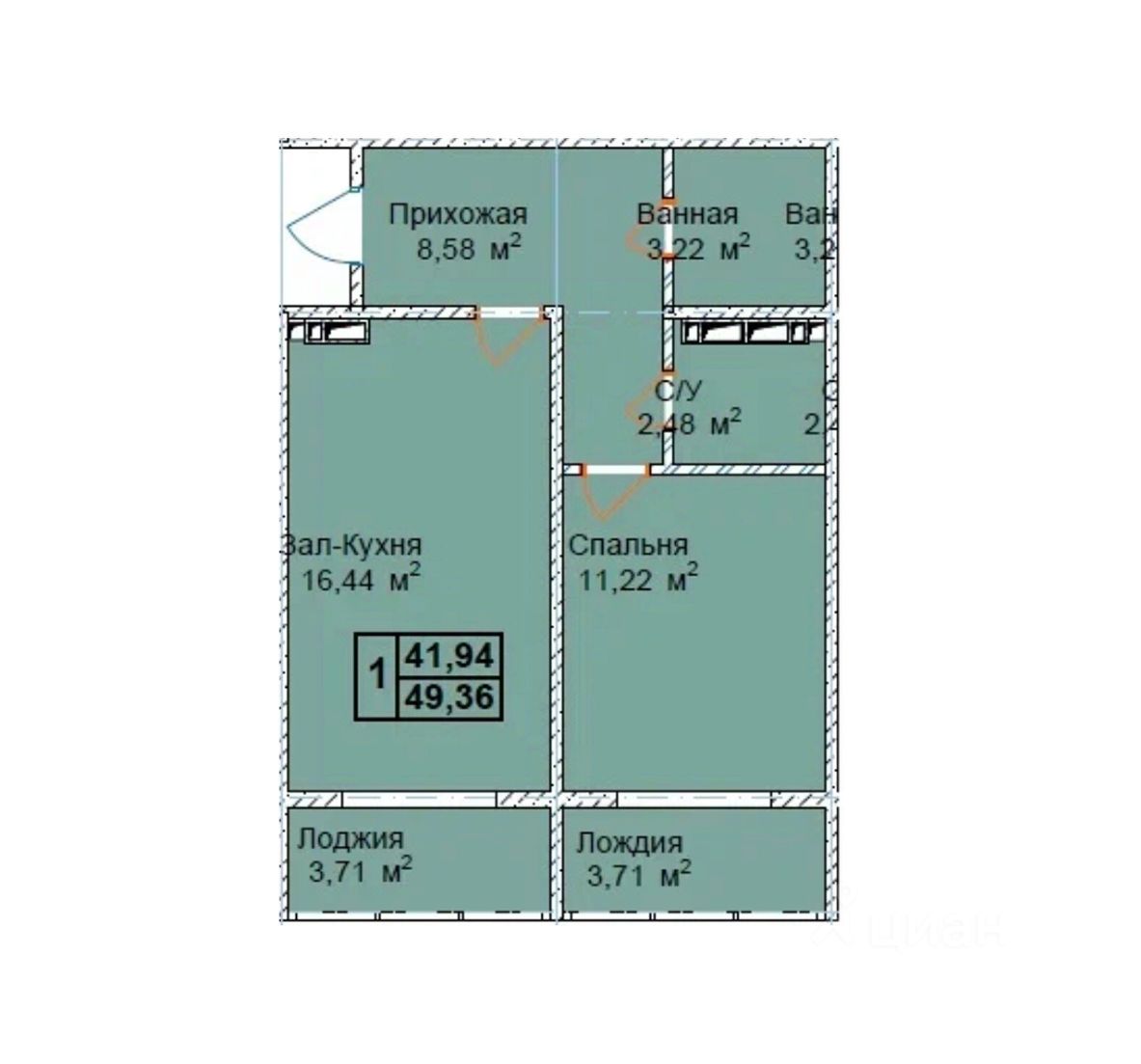 Общая площадь49,36 м2