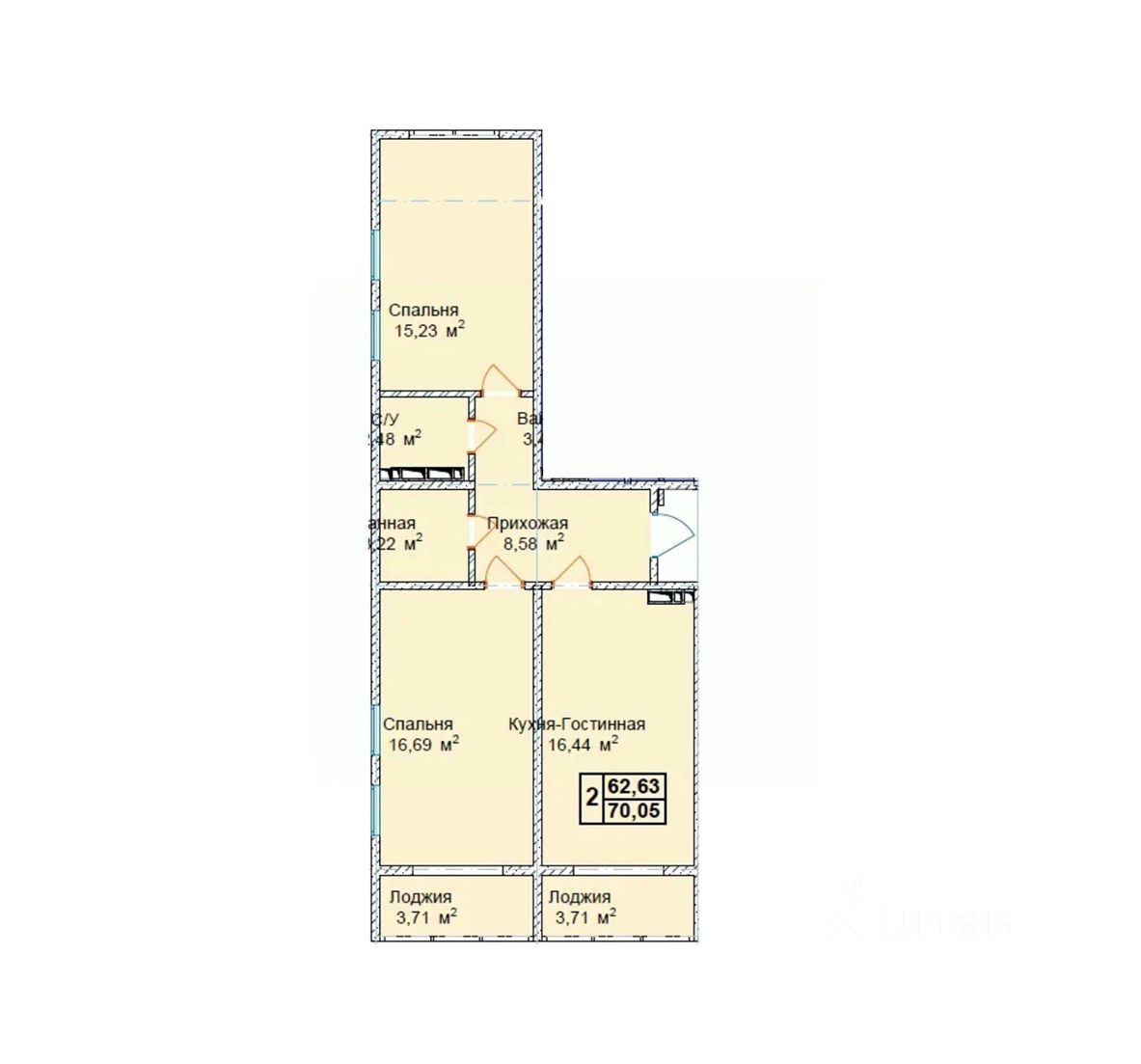 Общая площадь70,05 м2
